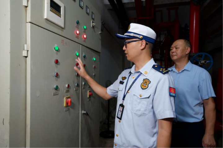 消防员监督员在进行检查指导在线配资开户网站。长沙晚报通讯员谢梦嘉摄